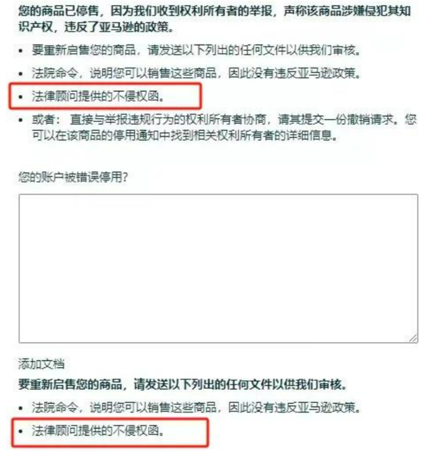 在亚马逊申诉时,平台明确要求提供法律顾问的不侵权函,也就是我们说的不侵权报告。若是没有这份由欧美律师签字的报告,仅仅靠自己发邮件申诉,成功率往往很低,因为你很难充分证明自己的产品不侵权。